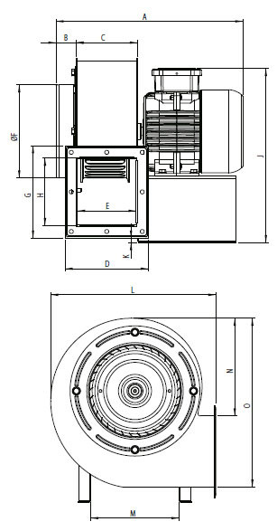 Матеріал корпусу вентилятора: листова сталь з електростатичним порошковим покриттям.